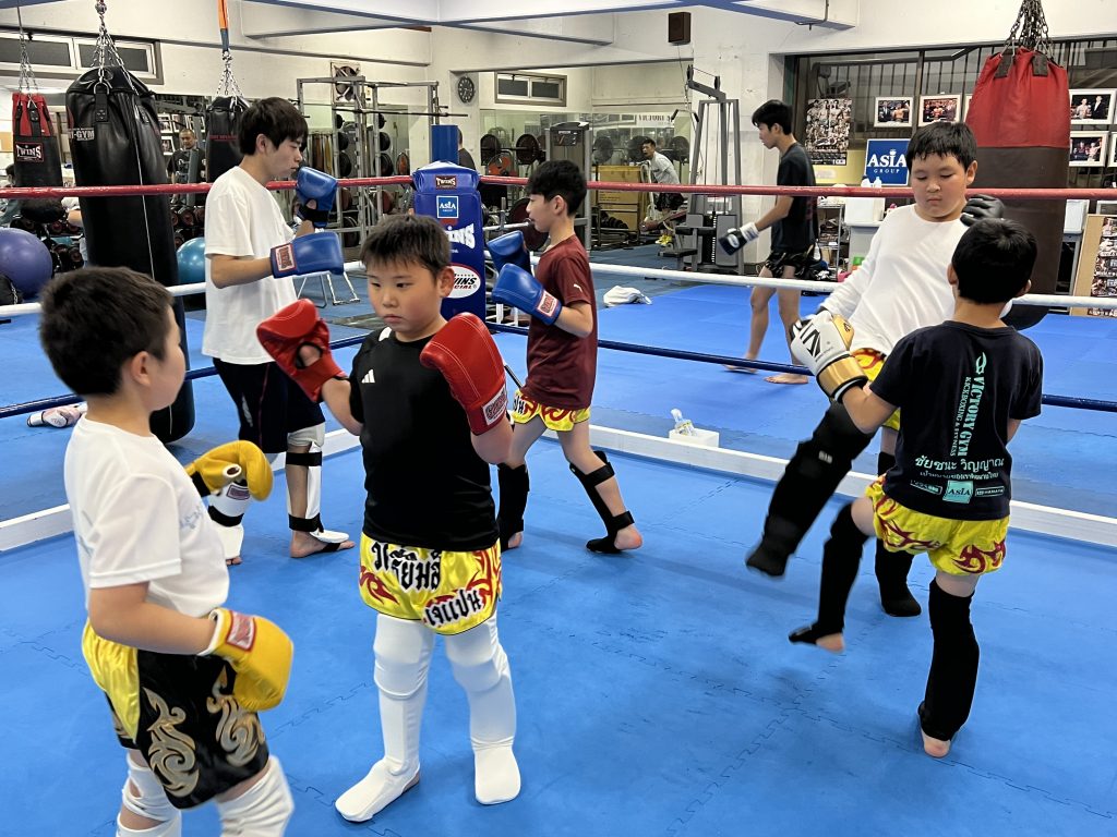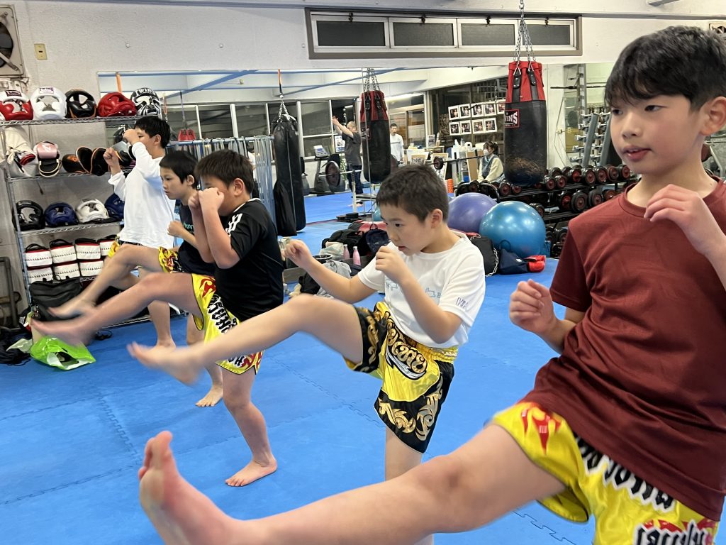 また、昇級制度があり、ジムにおいて昇級審査会及び加盟しているジュニアキック大会の試合内容及び成績で昇級していきます。ジム内での練習ではキックトランクスを着用し級毎にトランクスの色が異なります。